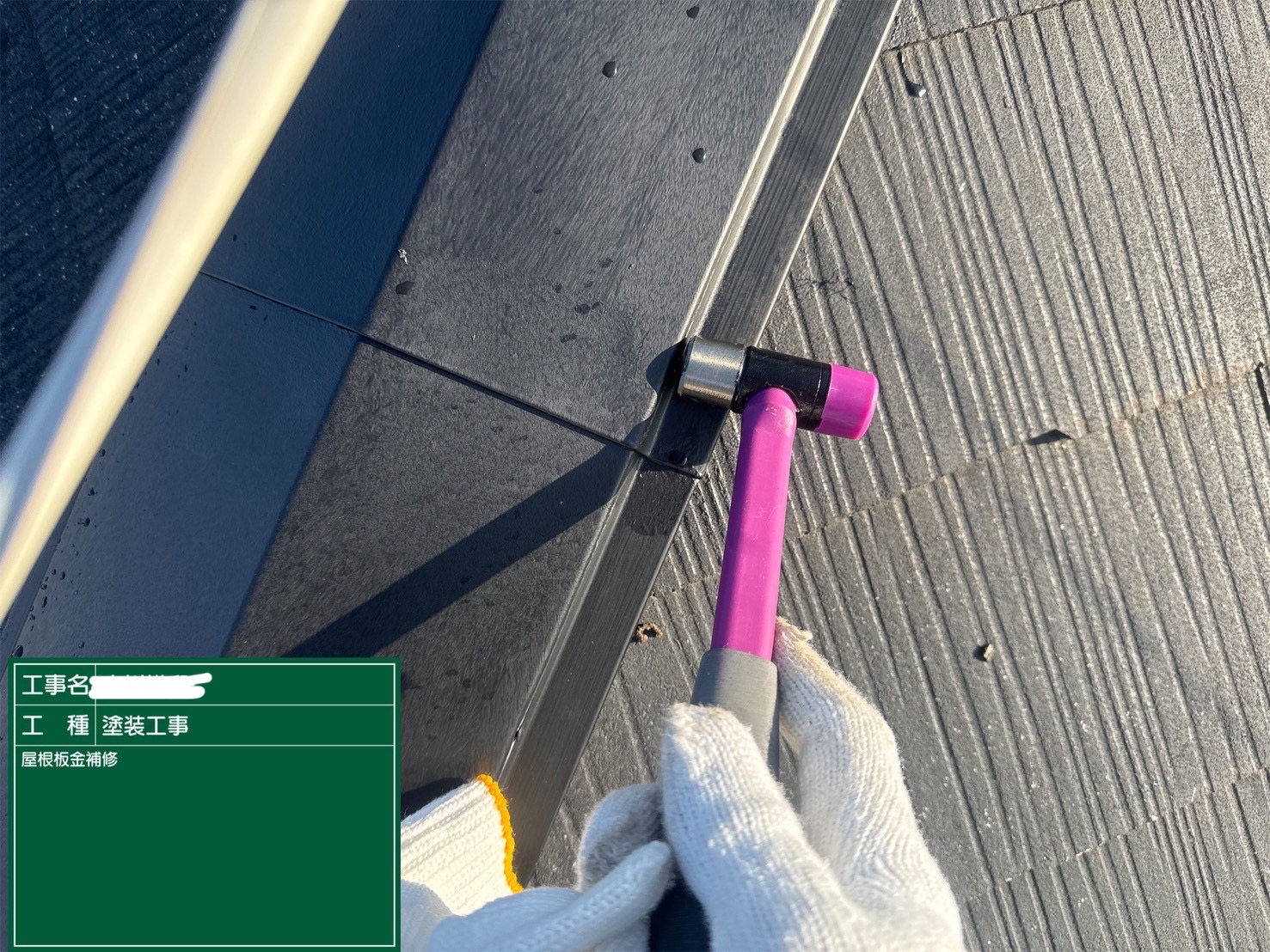 塗装前に、屋根板金部分の点検・補修を行いました。