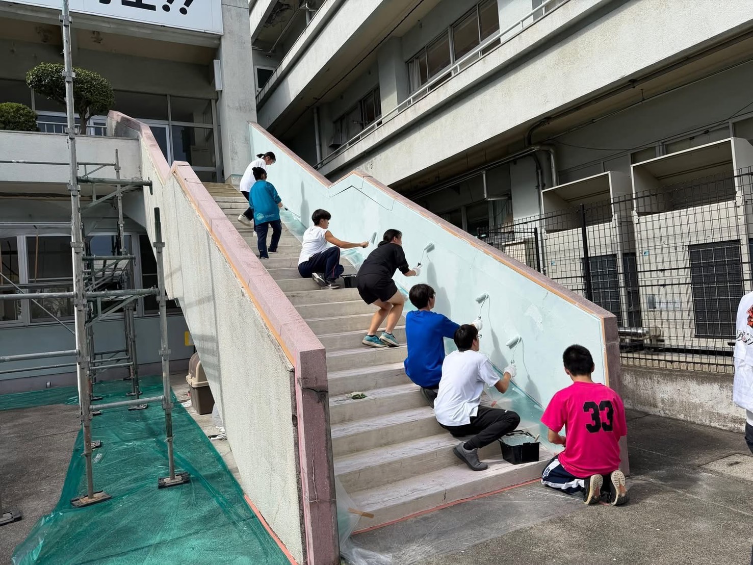 【塗魂ペインターズ】高校で階段塗装ボランティア!生徒と一緒に学校を明るくリニューアル🌸