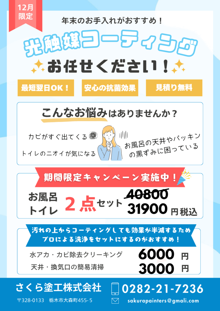【栃木市】✨光触媒コーティング年末のセットがお得✨